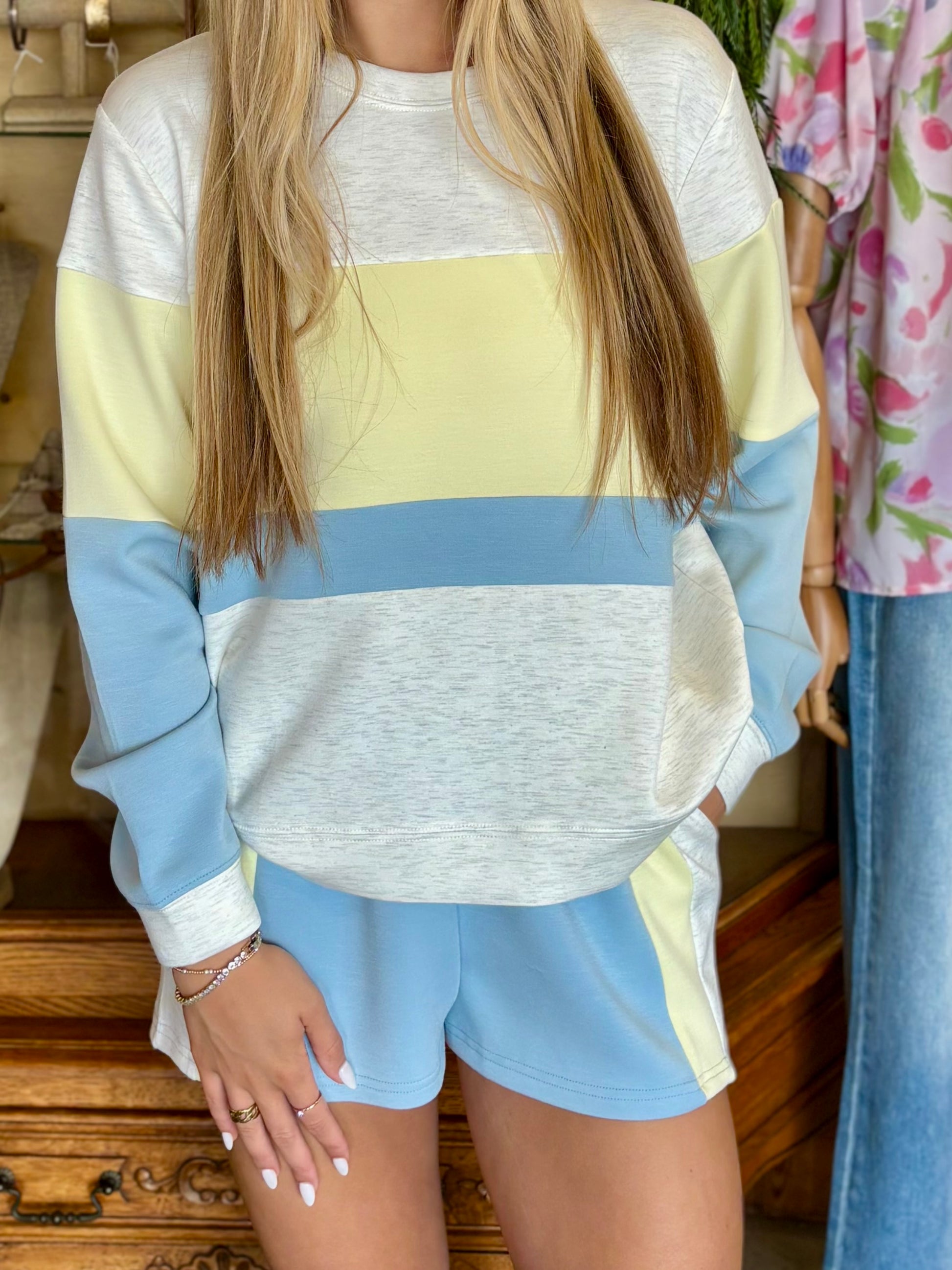 These soft heather gray shorts are the ultimate in casual comfort, designed with a relaxed fit and buttery-soft fabric that moves with you. Featuring bold blue and yellow accents, they bring a lively, sporty edge to your laid-back look. With an adjustable drawstring waist and cozy feel, they're perfect for lounging, running errands, or just soaking up the weekend vibes.